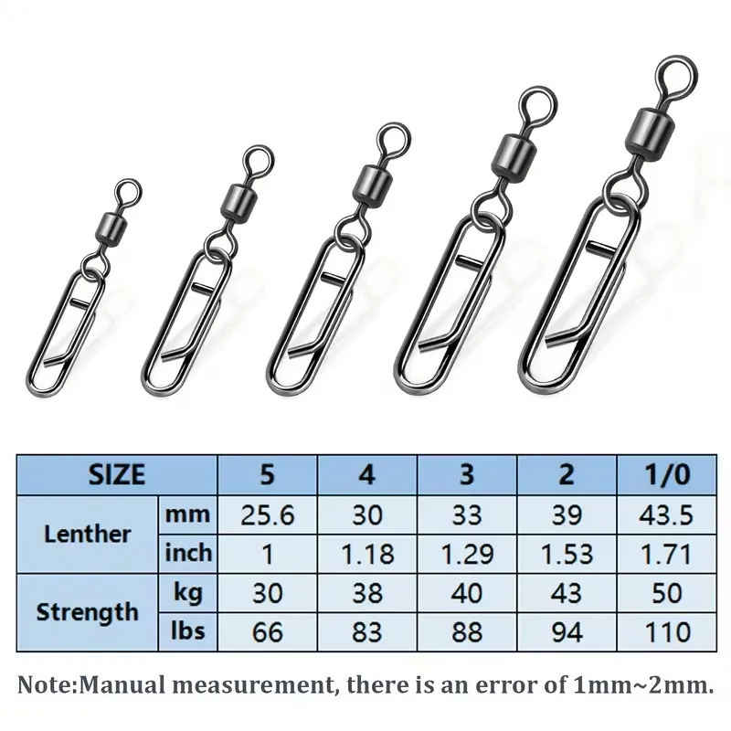 ، 50 قطعة من مشابك صيد قوية مع مشبك برميل دوار لتغيير خطافات سريعة، تتميز بقوة وسرعة عالية