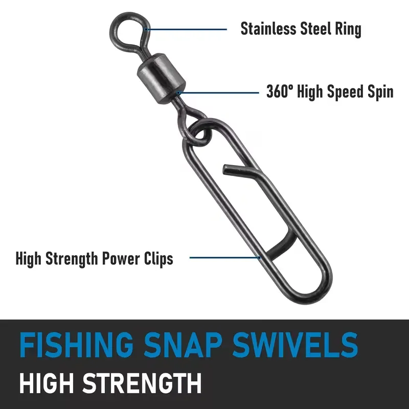 ، 50 قطعة من مشابك صيد قوية مع مشبك برميل دوار لتغيير خطافات سريعة، تتميز بقوة وسرعة عالية